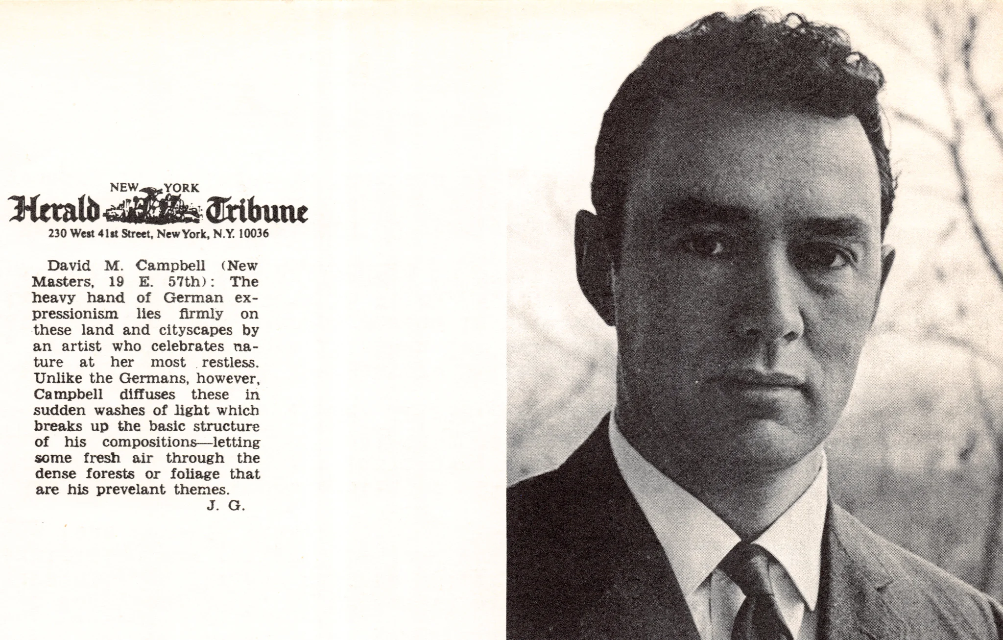 1965. Solo exhibition at New Masters Gallery, New York. Review by John Gruen, art critic for the New York Herald Tribune.